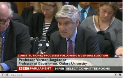 Update: all three parties are now displayed on the same graph. At right there's an image illustrating how many seats the LibDems might win for various shares of the vote. It assumes whatever the LD vote share the Tories maintain a roughly five point lead over Labour.